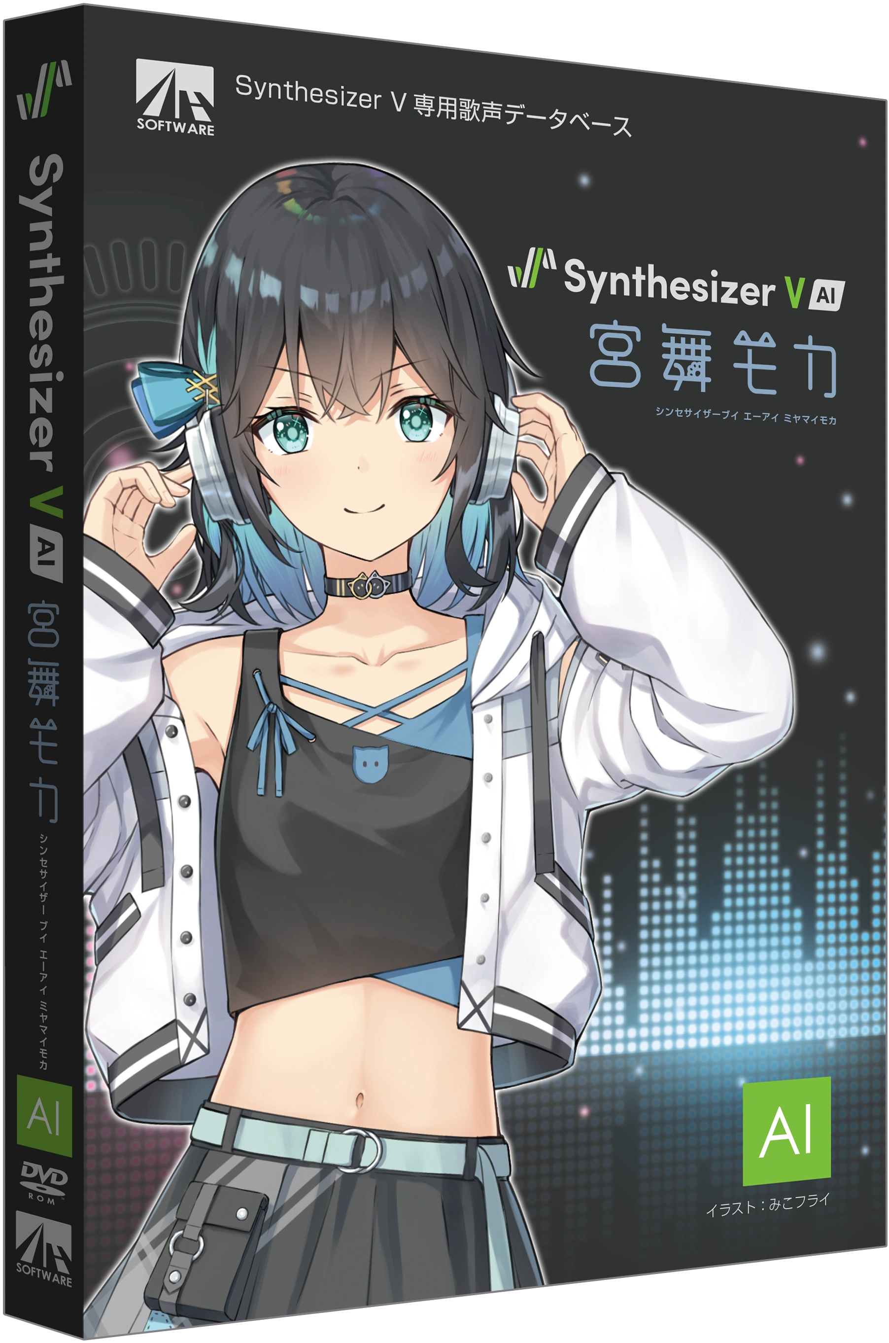On August 30, Miyamai Moca's Synthesizer V AI illustration was officially revealed, confirmed to be illustrated by Miko Fly, and her release date was announced for September 26. Pre-order reservations were opened the same day and would be available as physical and digital download editions, including both standalone and Starter Pack options.[9] A total of six vocal mode variations were announced: "Cheeky", "Cute", "Soft", "Mellow", "Powerful", and "Cool"; and four demonstrations were released following the announcement by Utsu-P, Chom-P, Haraguchi Sasuke, and Wada Takeaki.[10][11][12] In addition, she also received an official 3D model for MikuMikuDance based on her Synthesizer V attire, created by Tsumidango, as well as reference artwork also illustrated by Miko Fly.[13][14]